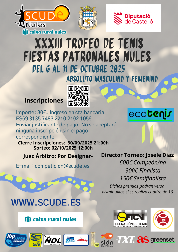 Se amplía el plazo de Inscripción hasta el Jueves 02/10/2025 a las 14,00h. Los listados de inscritos aparecerán en este mismo apartado y en la web de ibptenis.