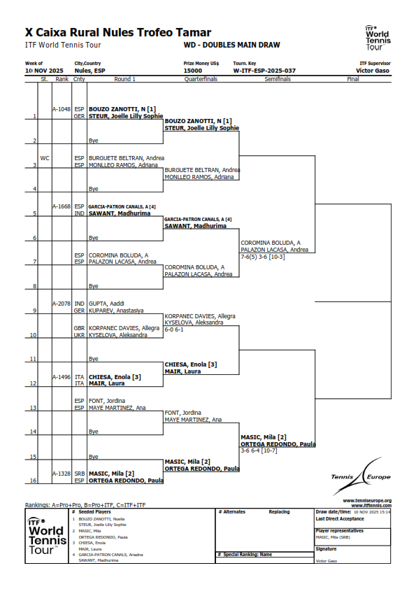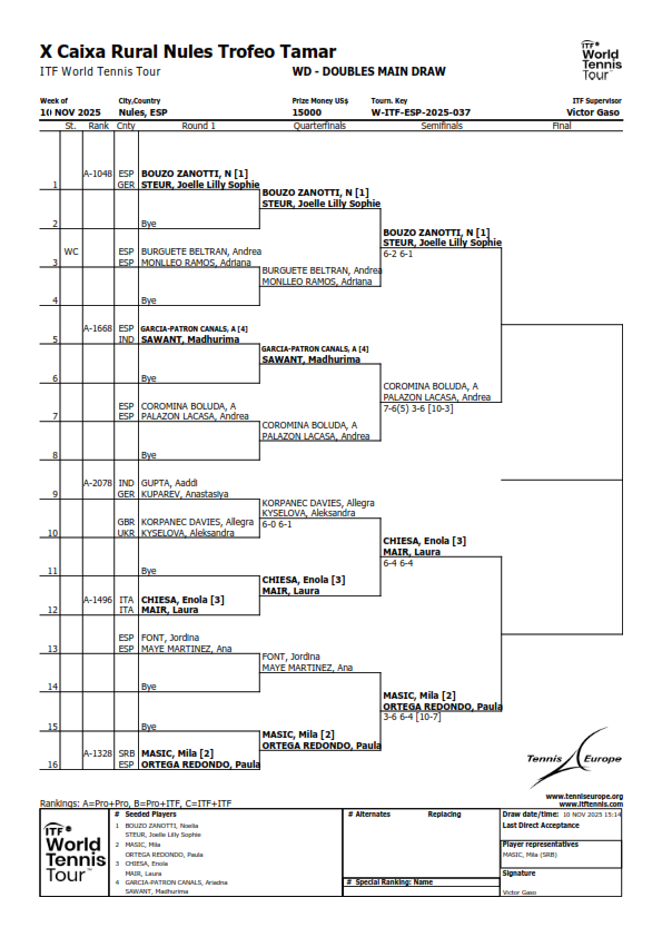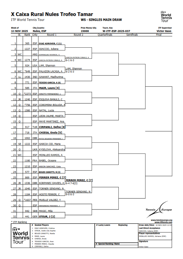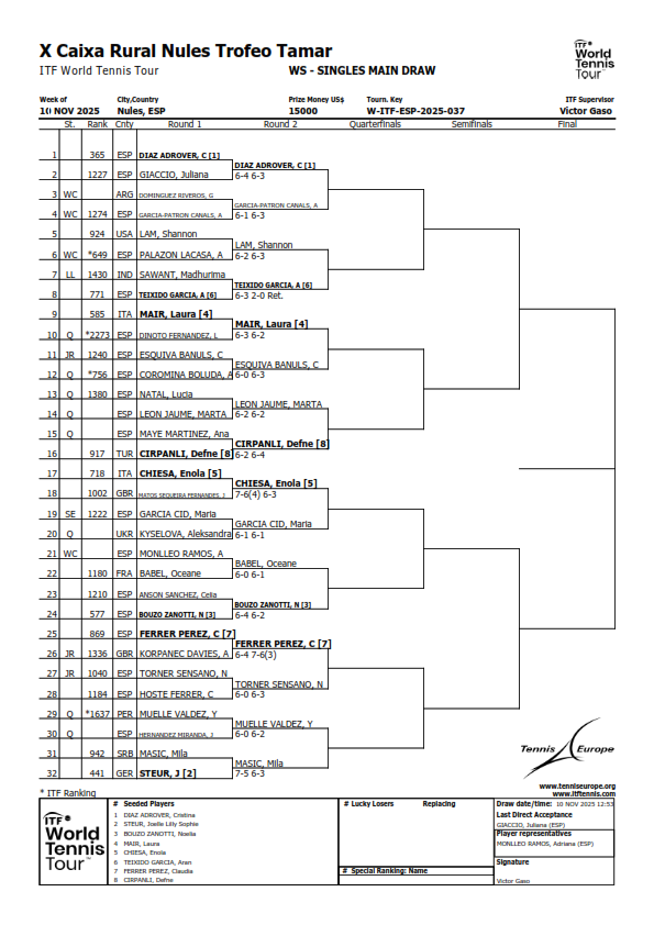 El WTA NULES 15.000$ -I TROFEO TAMAR- ENTRA EN SU RECTA FINAL